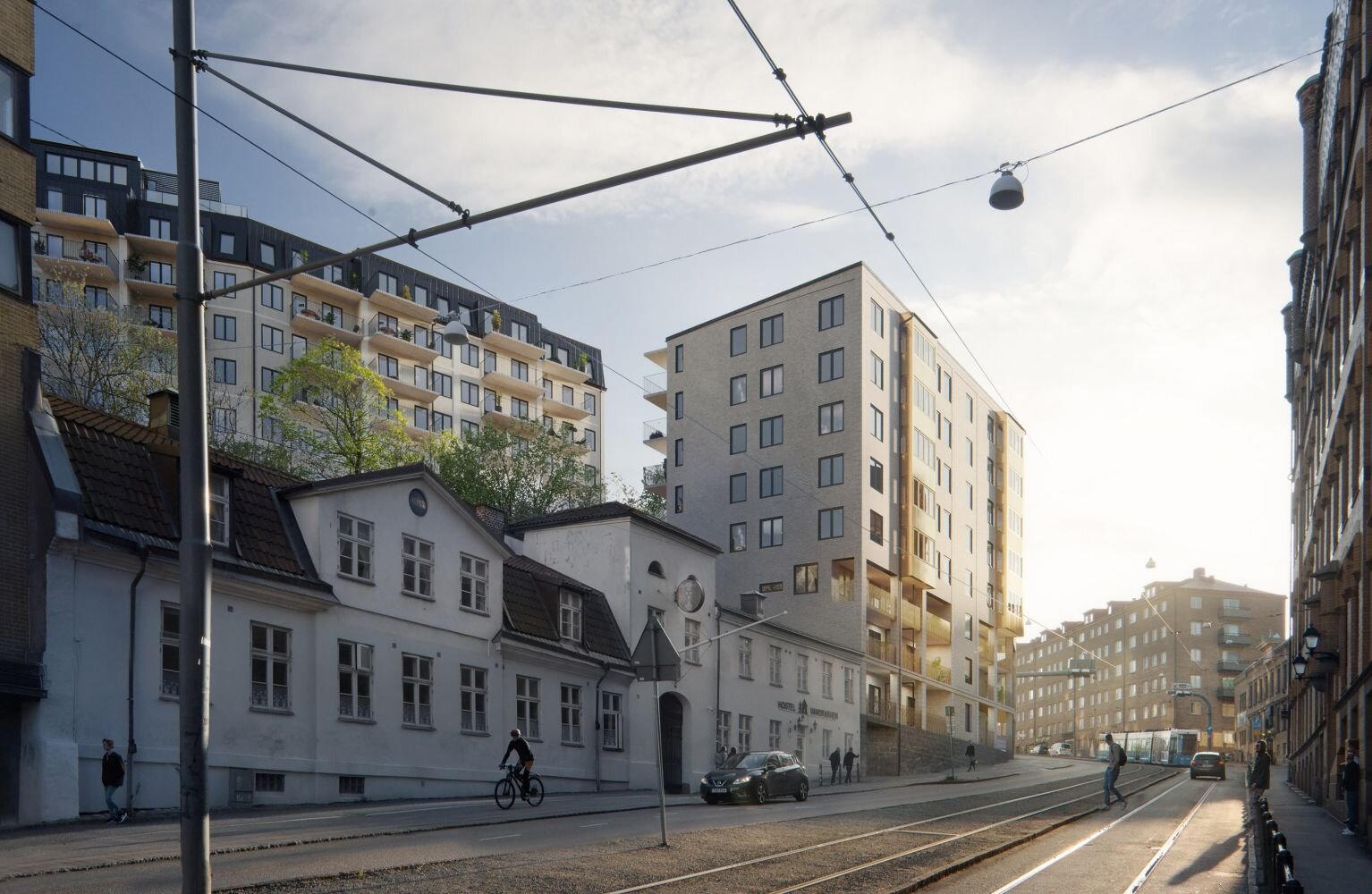 Boligprosjektet Stigbergshyllan ligger på en bratt bergskråning, et steinkast fra Masthuggskajen der en helt ny bydel i Gøteborg tar form nær vannet.
