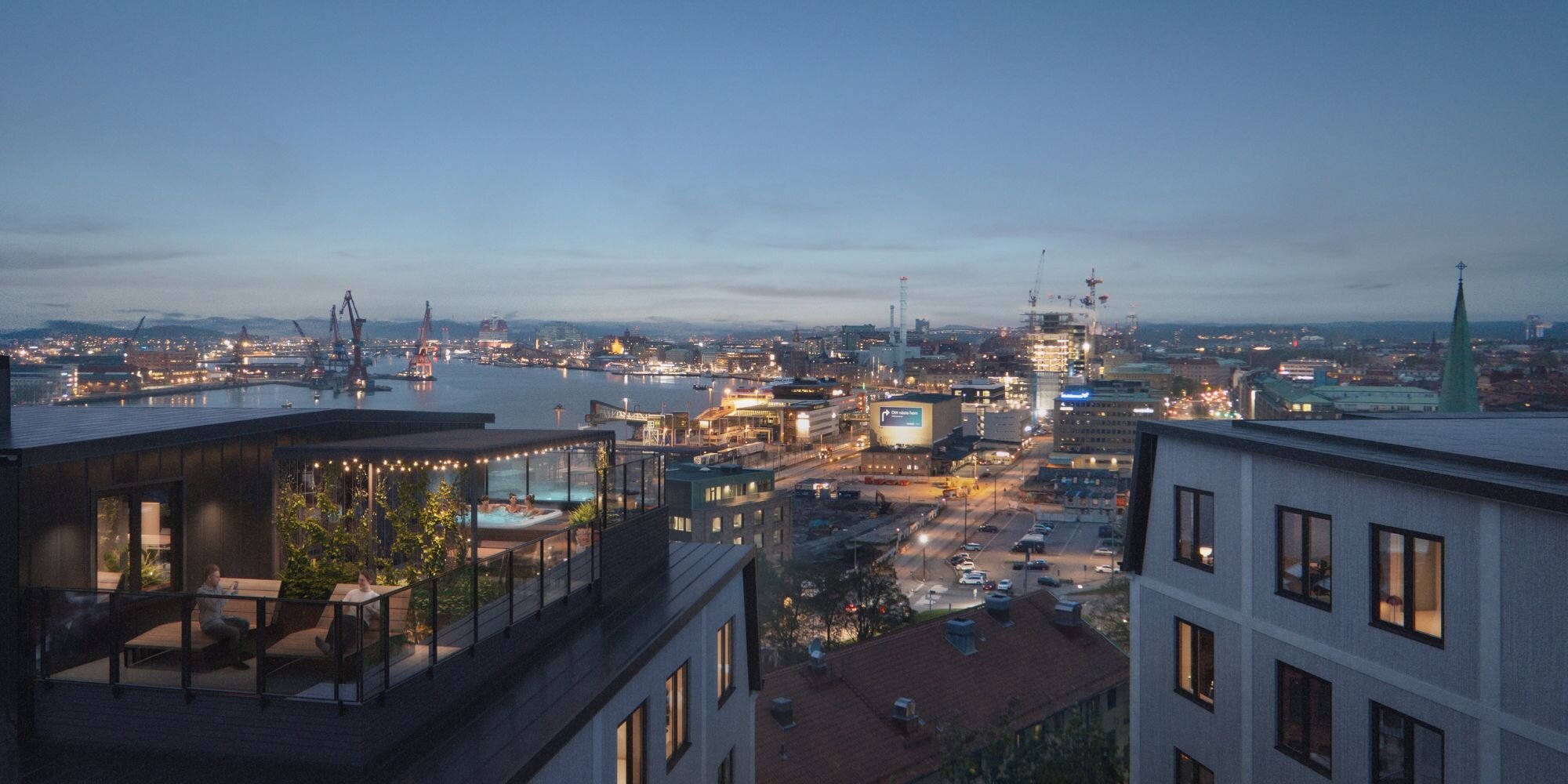 187 leiligheter i varierende størrelse – fra ett til seks rom og kjøkken – samt felles takterrasse med vidstrakt utsikt over Göteborg havn. Totalt består prosjektet av tre bygninger på 9 etasjer med fasader i gult tegl og lysmalt betong. Samlet areal er cirka 16 000 kvadratmeter.
